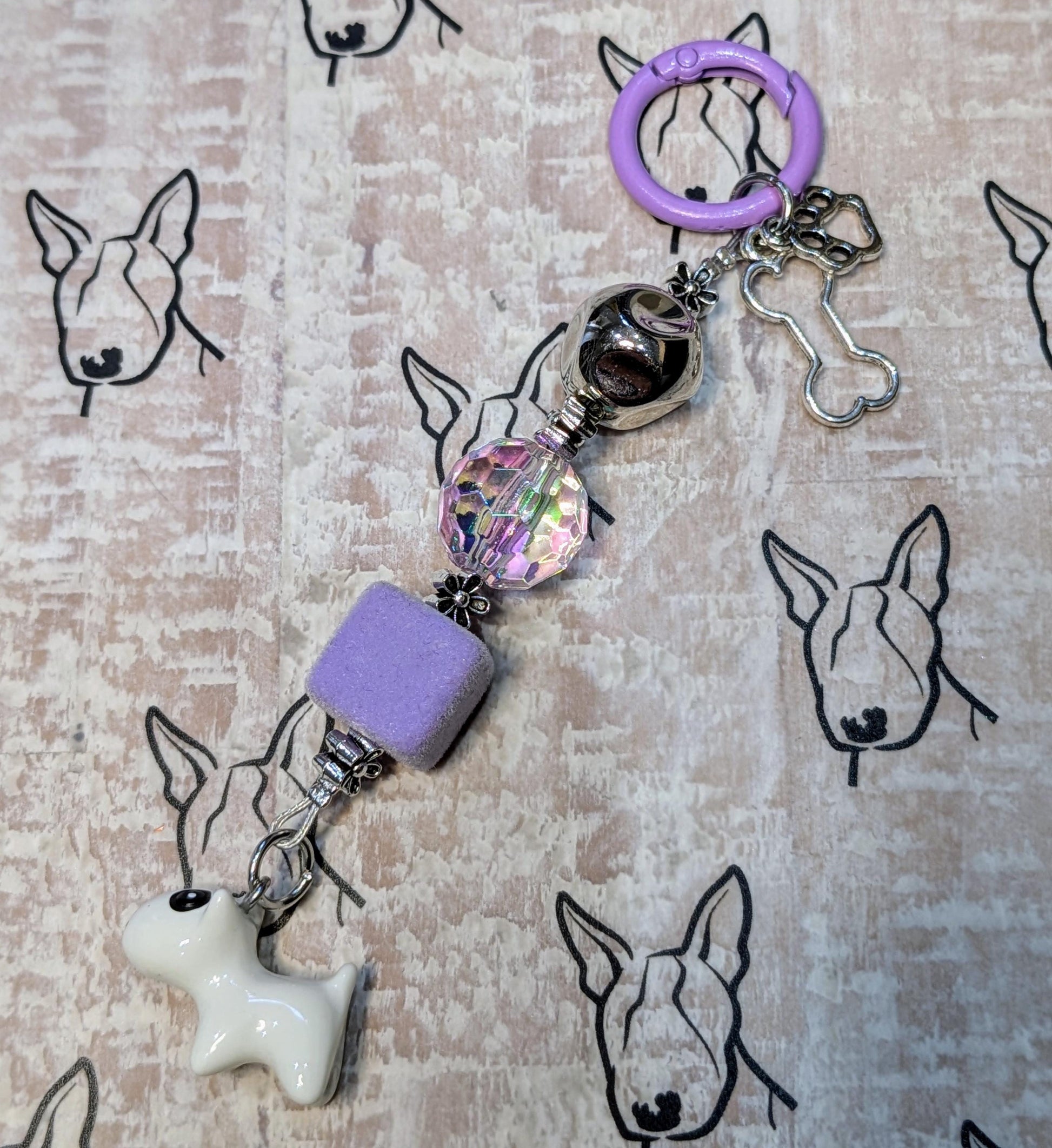 Handmade Beaded Bull Terrier Keyring / Bag Charm / Phone Charm — Purple Disco Bead